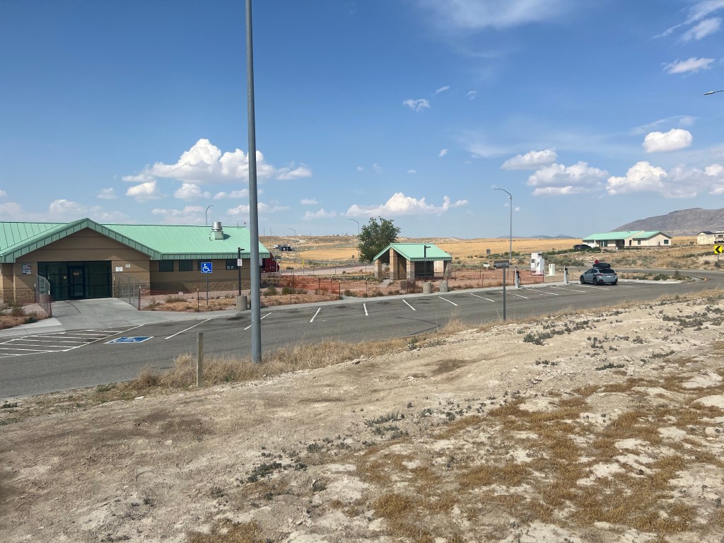 The highway just went on and on straight and endless. I guess that is why the Utah highway authority decided to put signs at regular intervals saying hypnotic driving causes accidents. They said something about drowsy driving and you keep reading these as you drive causing a sort of hypnotic suggestion. Yes, I started to get drowsy….The first rest stop I came to I drove on in. To my surprise I found a Chargepoint charging station and it was free! It was the first charging station I found so far on my trip. It was just odd that in the middle of nowhere there was a charging station. Of course, I took this as an omen….a good one.