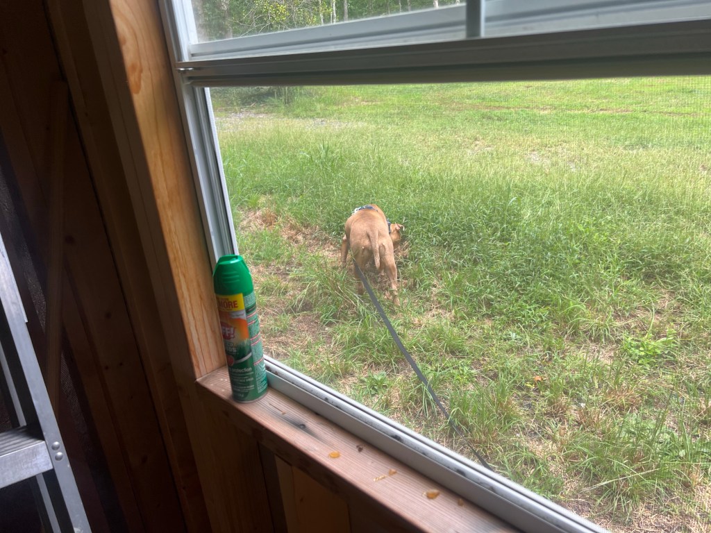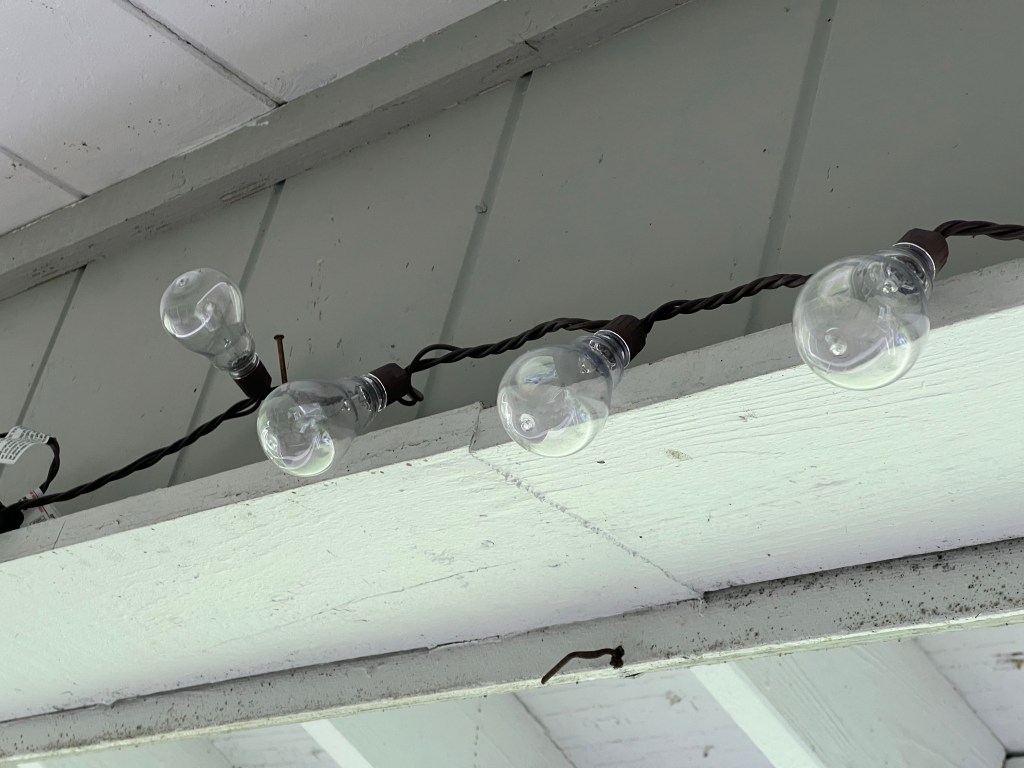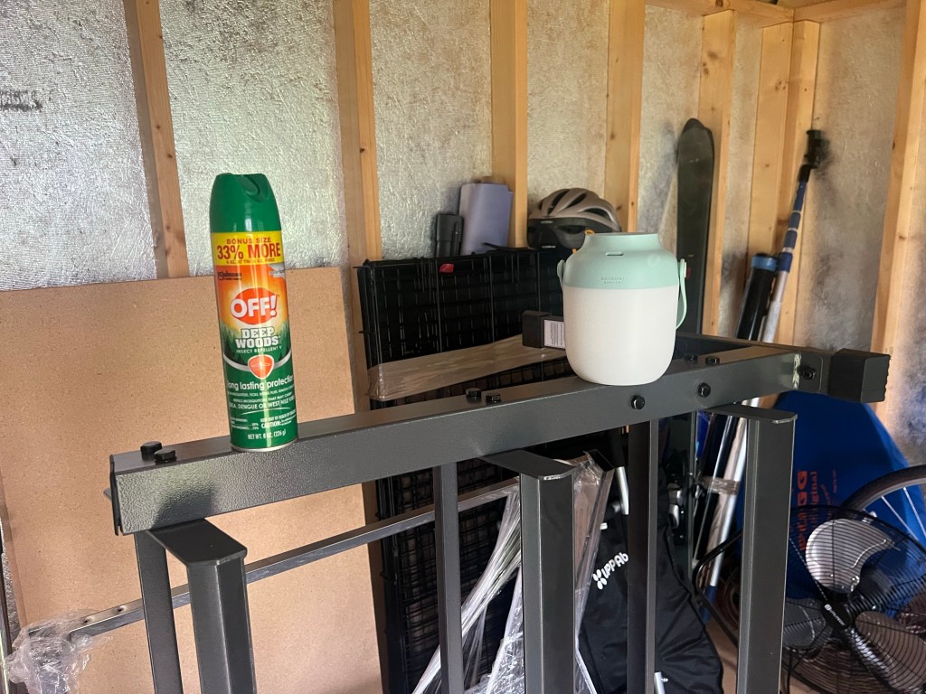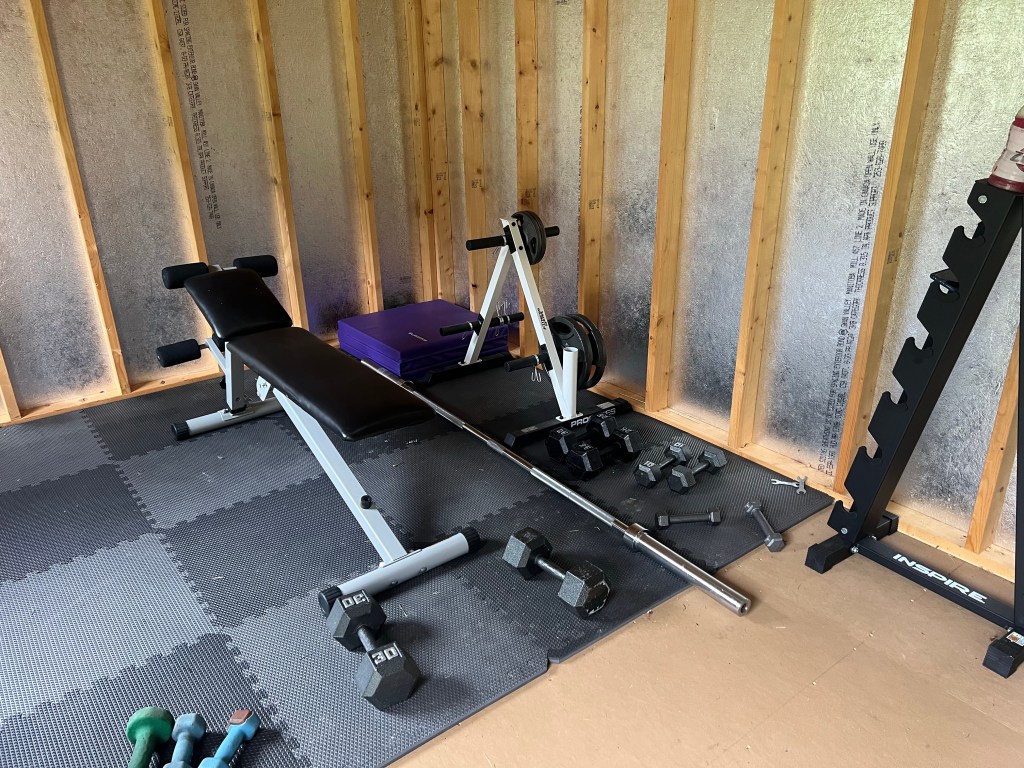 I broke down and unwrapped my bench. I just am not getting good workouts otherwise. I also found these super cool diffuser lanterns. They were only $10 so I bought two! I put citronella in them and they last for five hours! They are lanterns also so you can turn on the light. They are portable and work great on the porch too. It takes two in the workout shed to keep those pesky blood suckers at bay…. I have a can of Deep Woods Off there to threaten any other bugs that dare to creep into my space.