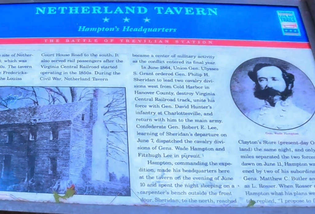 It seems General Robert E. Lee sent General Wade Hampton to hang out at the tavern, gather his troops and chase General Ulysses S. Grant who had pushed on into Charlottesville after destroying the central Virginia railroad.