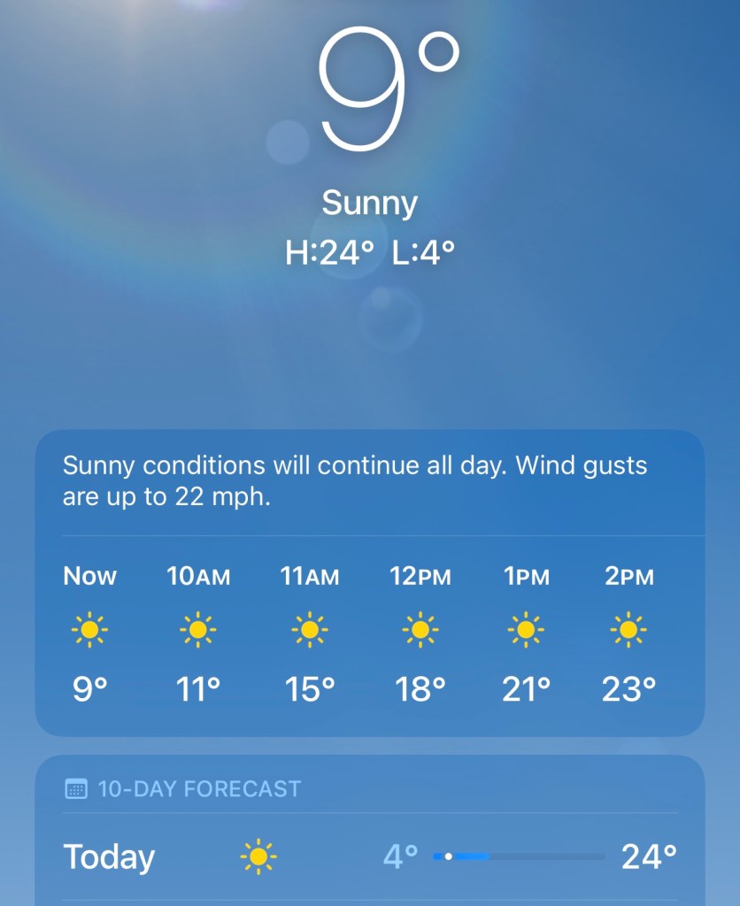 It seems like it has been raining forever here. It is supposed to snow today/tonight. Funny how the temperatures get colder as the day goes on. It should be about 7 degrees at 9 pm with snow on the horizon. The question is whether it will melt off by morning….. It would be nice to have a white Christmas.