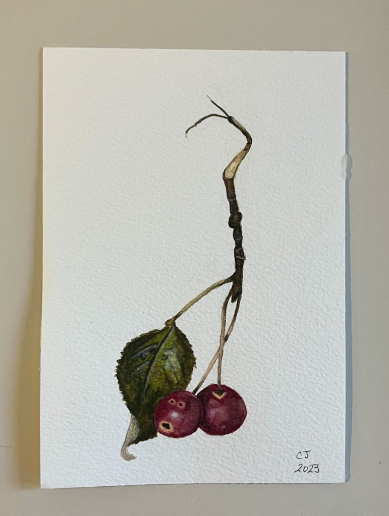 In the interim, I have been painting watercolor botanicals. It has become quite the obsession. It does make me feel a little more sane. My photo gear is packed and I have been jonesing on creative expression. These are 5×7 inches. Keep in mind I am not a painter, just a dabbler. I actually started these to send to my sister. I thought she could frame and put in her kitchen. She informed me that in Israel they donβt put things on the wall as they are typically cement and bit more difficult to hammer nails into themβ¦.π³ So now I just keep creating an ever growing stack of these botanicals. I guess how big the pile gets is an indicator of how stressed I have been. Watercolor is wonderful though, something about how fragile it is, like my soul. It also takes layers to build an image, much like our layered personalities. I see why they use painting as therapy in mental institutions. It does make one more reflective. It is a good medium for the mentally ill. I mean really, look how many crazy painters there have been…!