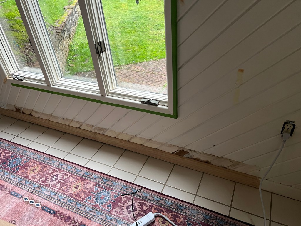 After I ripped out the heater vents, I had to fix some holes and put down baseboards. During all this I found they had not caulked or sealed anything. One of the most time consuming things was filling the spaces between the planks. This took at least a week because I had to fill all the walls also. I think I have carpal hand now from all the caulking.