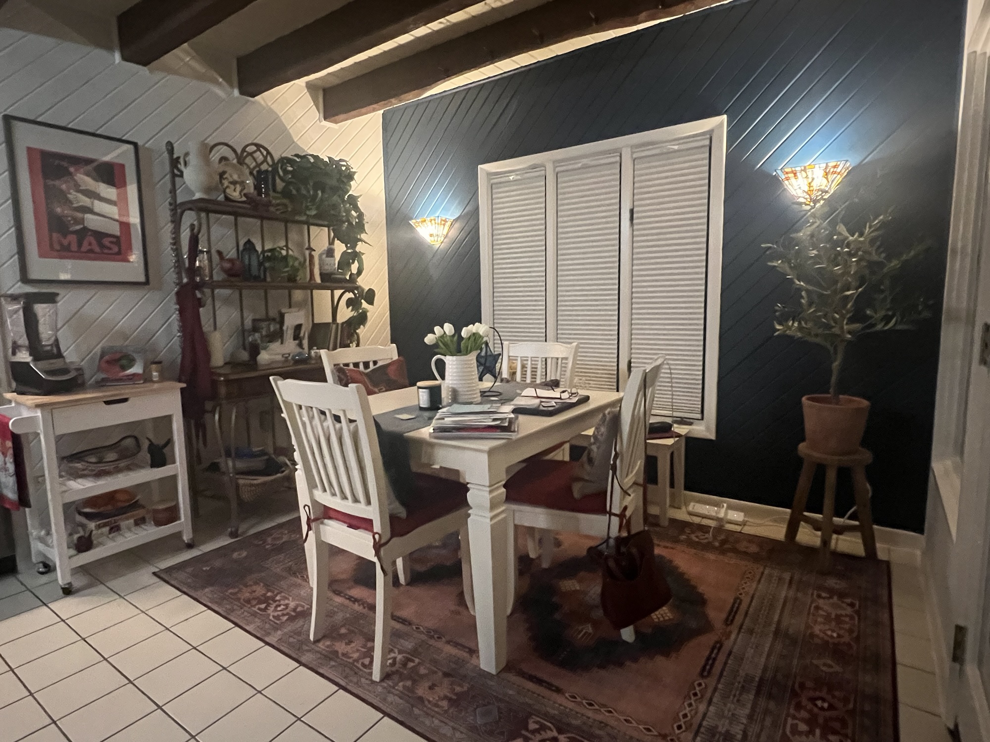I choose a mediterranean blue as the accent wall. I picked the color from the rug I found for the floor. I designed all the colors from this rug.