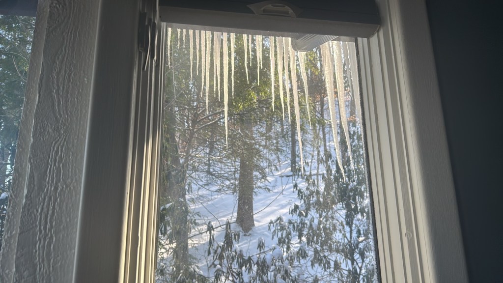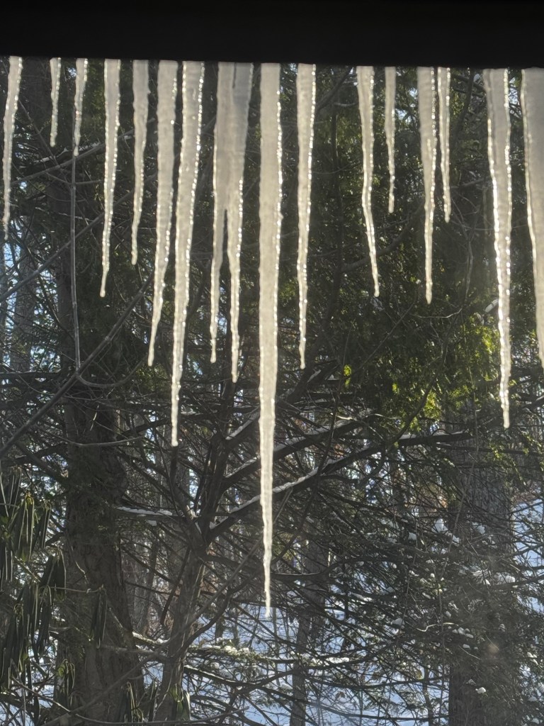 I kept hearing this strange loud noise….I found it! Icicles melting and crashing to the ground.