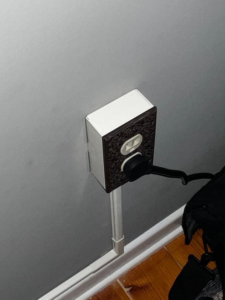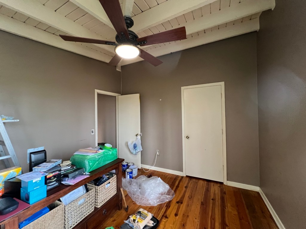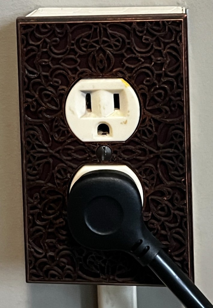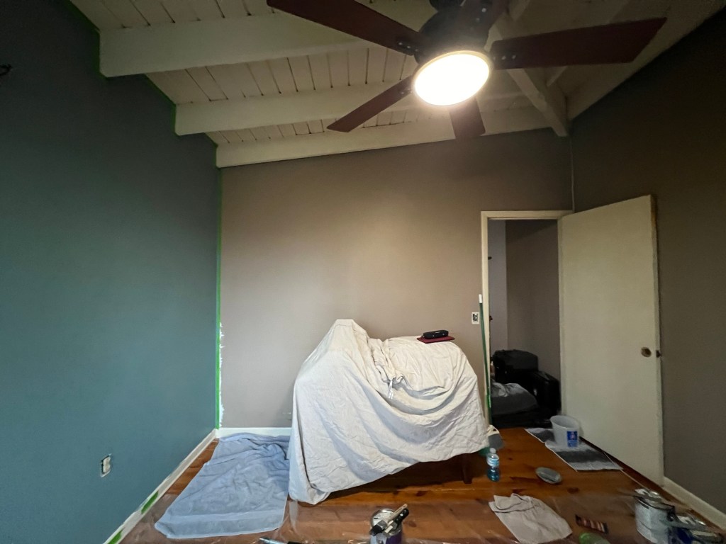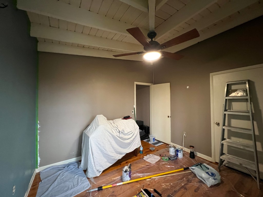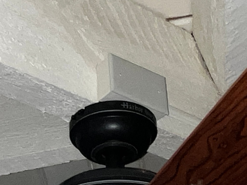 The ceiling fan was just on a plug stapled to the beam and wall. I had a junction box installed and conduit put in to hard wire the fan. It is much safer now and looks professional.