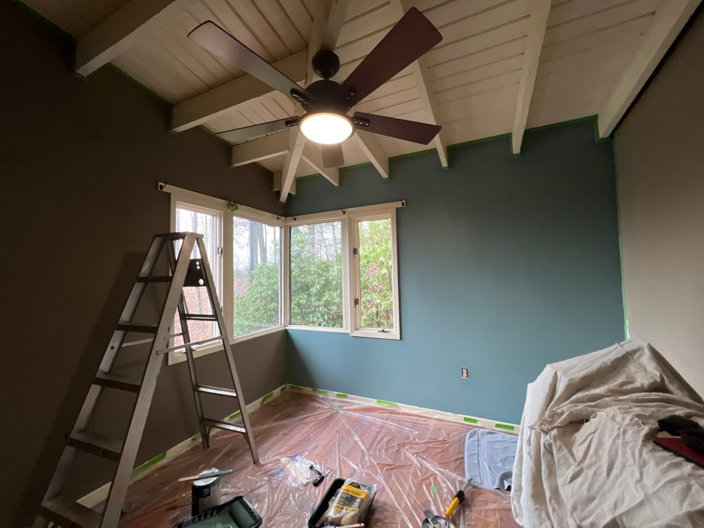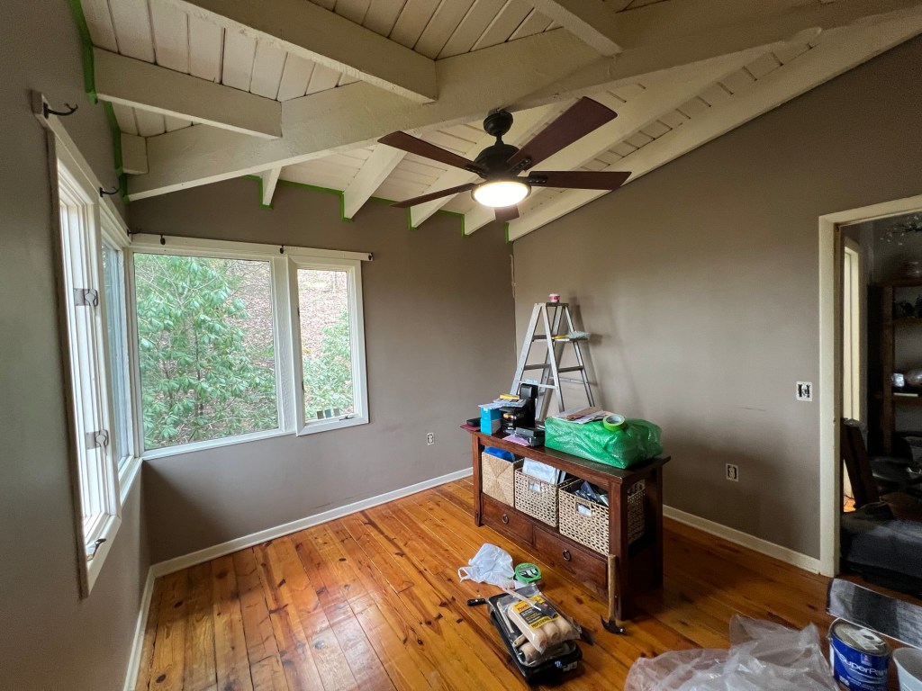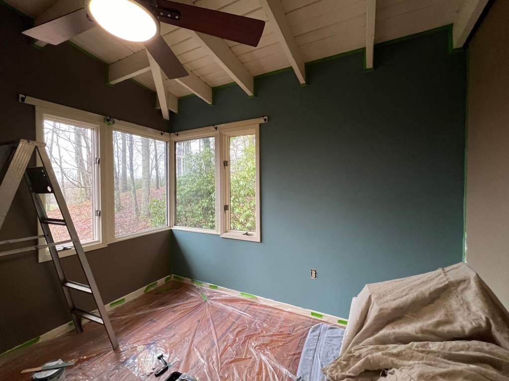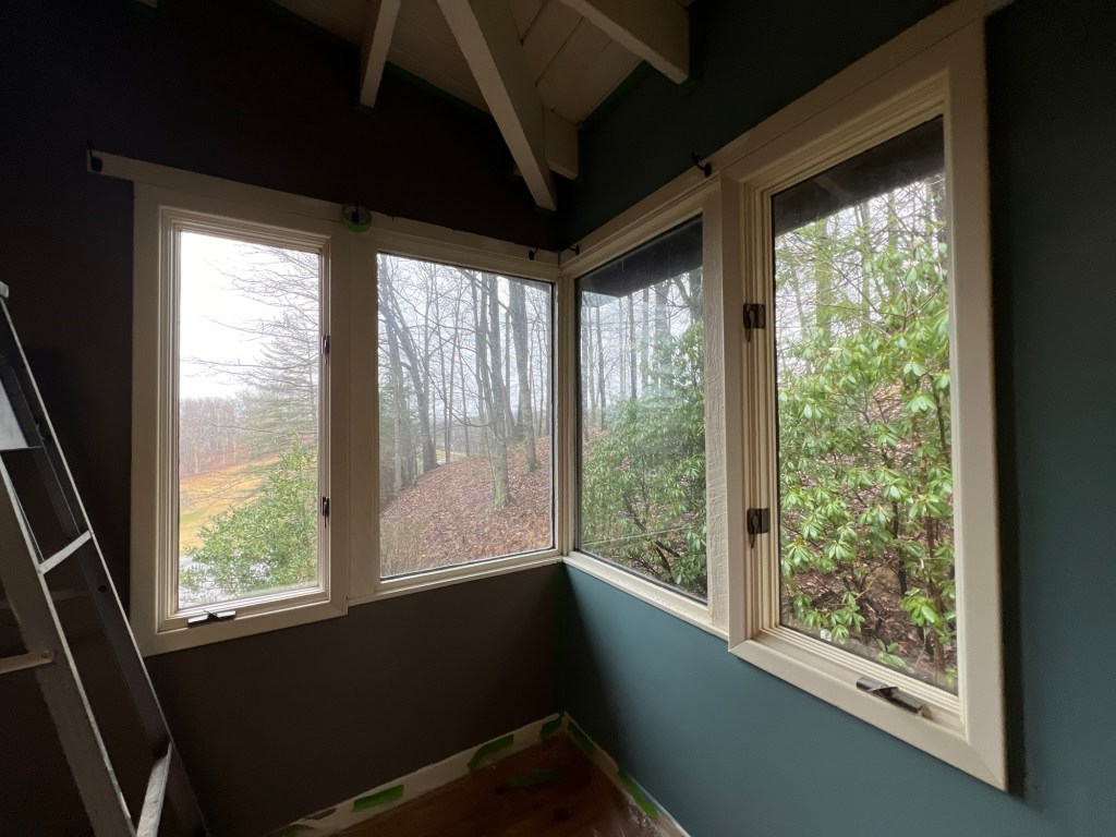 You’ve seen this before in previous posts. All the windows in this house are just a disaster. Sanding, scraping, cleaning, bleaching, patching, sealing and removing old weird window remnants was the first order of business. I prepped all this and scraped, taped and sealed the windows. It was ready for when I got to the trim. I always do trim last.