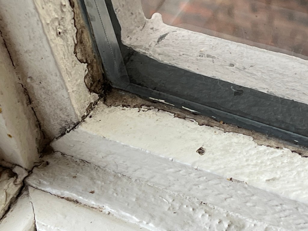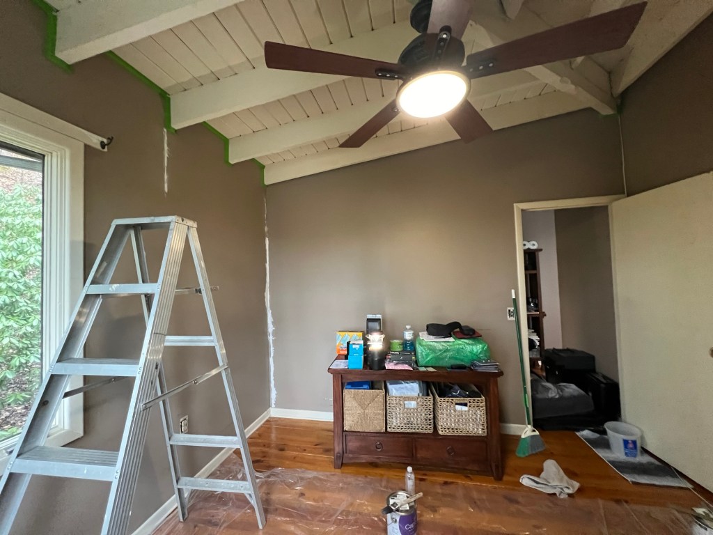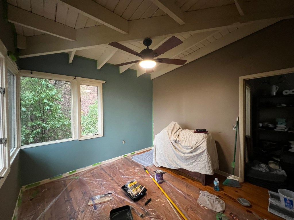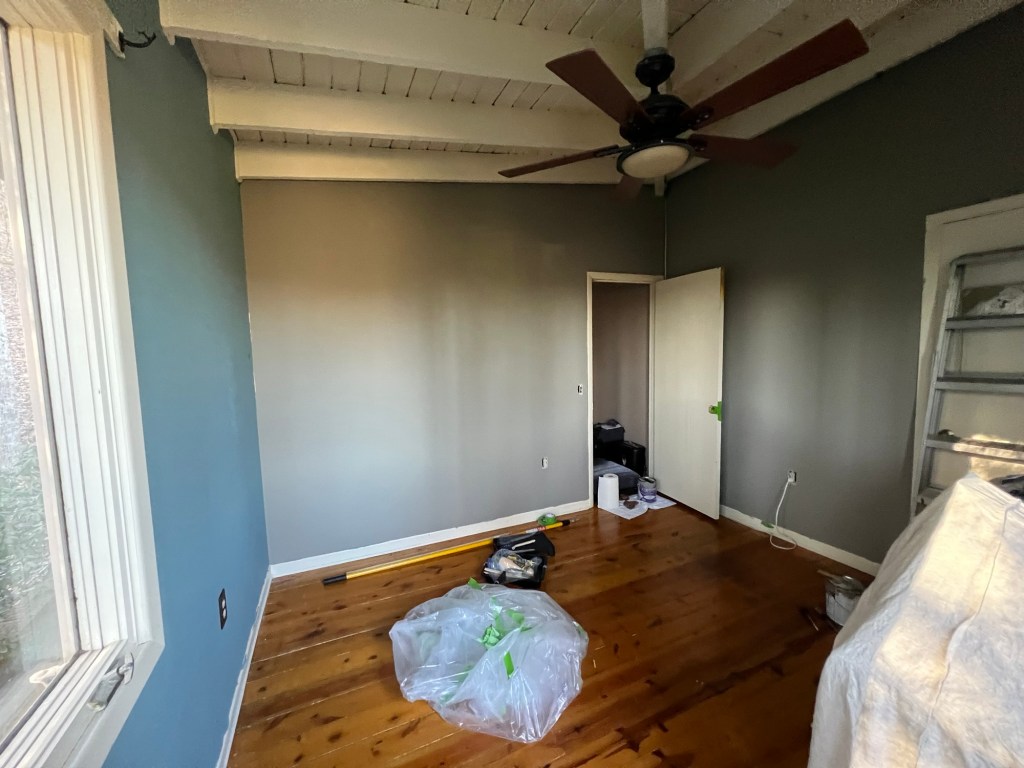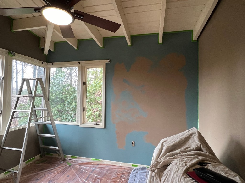 You’ve seen this before in previous posts. All the windows in this house are just a disaster. Sanding, scraping, cleaning, bleaching, patching, sealing and removing old weird window remnants was the first order of business. I prepped all this and scraped, taped and sealed the windows. It was ready for when I got to the trim. I always do trim last.