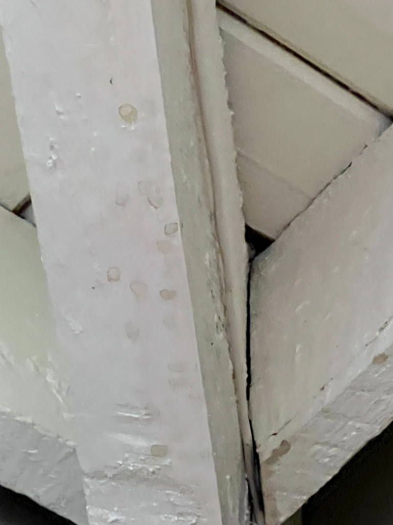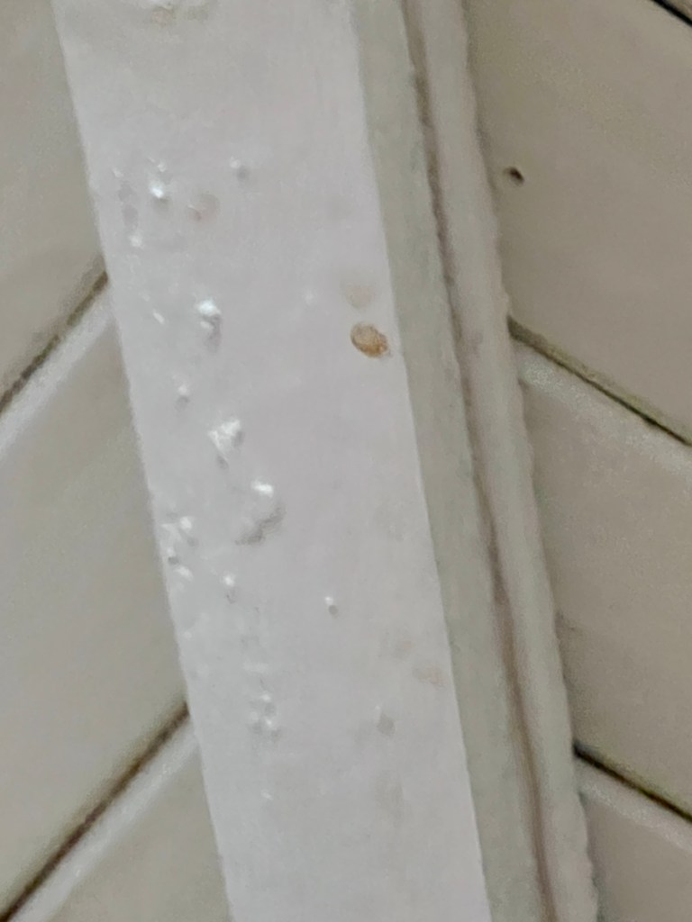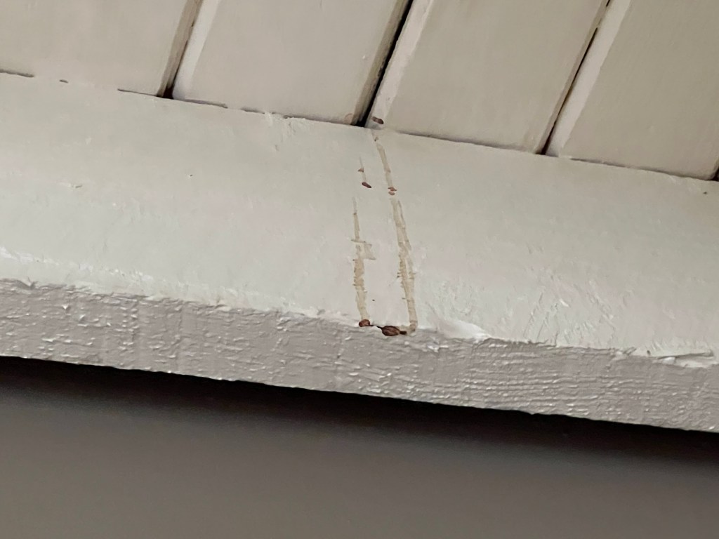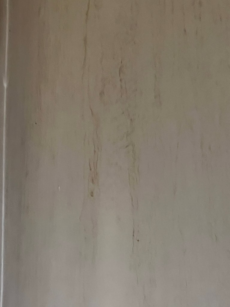 The walls had drip marks from the leaky roof. Unfortunately, I painted thinking the fix I paid a company to make worked. It did not. So, it leaked all over my painted walls and door.