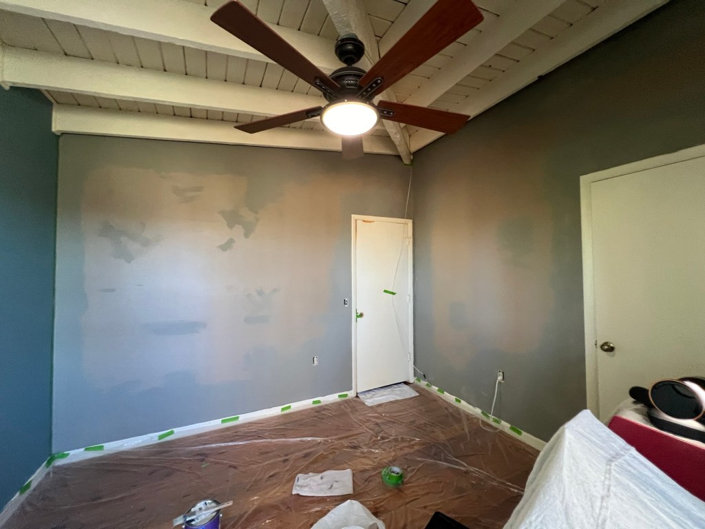 The walls were a mess and there was a massive hole in the wall behind the door. Again, no door stop. I prepped, primed, taped, patched and sealed the walls.